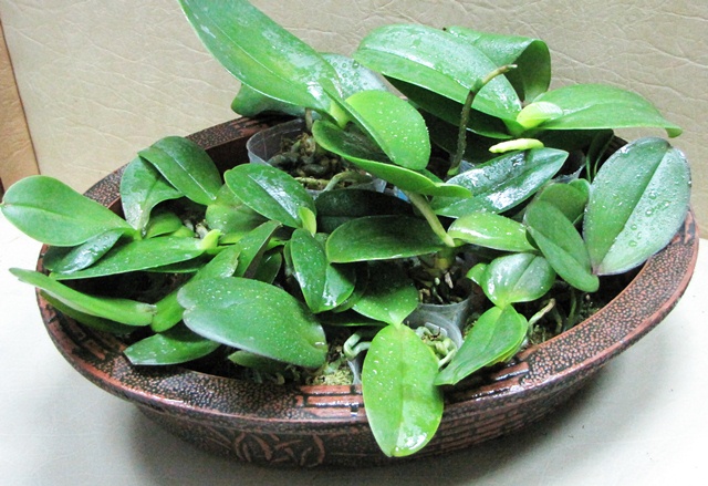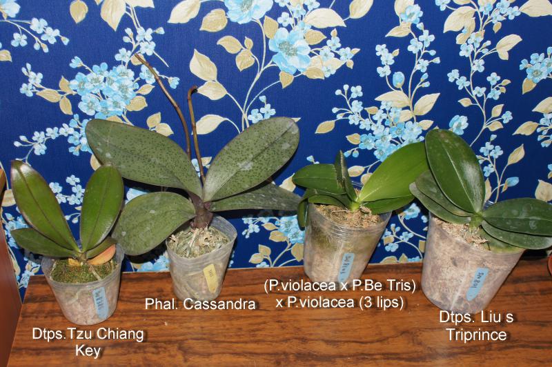 (P.violacea x Be Tris) x P.violacea (3lips)- 2 шт, на фото слева направо - верхний ряд, отличные взрослые орхидеи, у одного проклюнулся цветонос!Нижний ряд, слева направо-