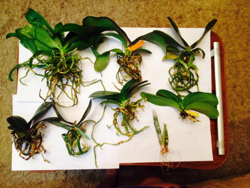 По заказу: из 7 растений 6 в идеальном состоянии на мой взгляд (1 фалик подвел, слишком владный мох, соответсвенно корни все гнилые и листик верхний в подозрительном состоянии): КС хорошая, много растущих корешков, тургор листьев отличный, чистенькие (на одном только нашла какую-то букашку, мне показалось паучка. Удивила Сого Готрис: 4 одинакового размера орхидейки на одной ризоме. Тут же ото мха всех освободила... Сил не было на что-то кардинальное, поэтому просто помыла всех с мылом , набодяжила янтарка+циркон+глюкоза, обрызгала с головы до ног :girl_doctor: И положила на сутки сохнуть... На след вечер всех фитовермом протравила и рассадила
