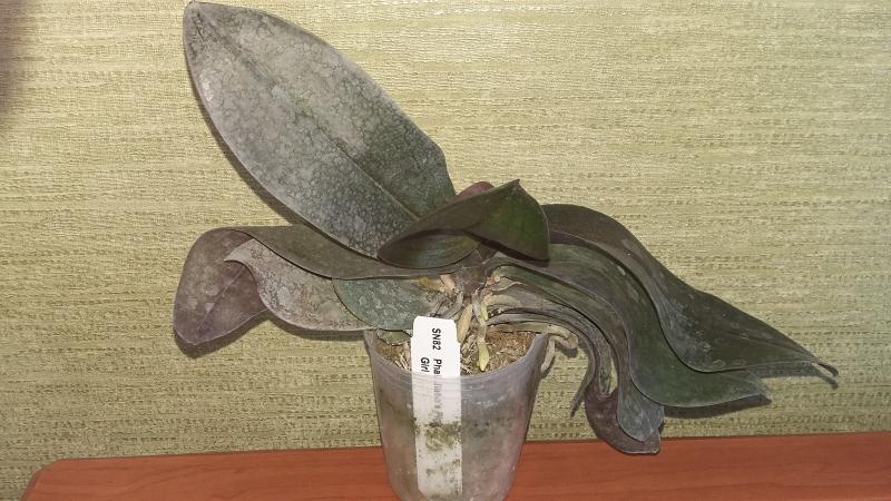 Из прошлого заказа страдалец не выжил. Рискнула его еще раз получить. Размер растения 2,5, а не заявленные 3,5. Пришел во влажном мхе. Сам фаленопсис хороший, но вот листья внушают опасения: один сразу удалила. Другие два буду наблюдать. Сейчас после отмокания остановлю на ночь высыхать, потом пятна замажу зеленкой. Резать не хочу, так как тогда останется только один, самый молодой листик. Или может кто еще чего подскажет?