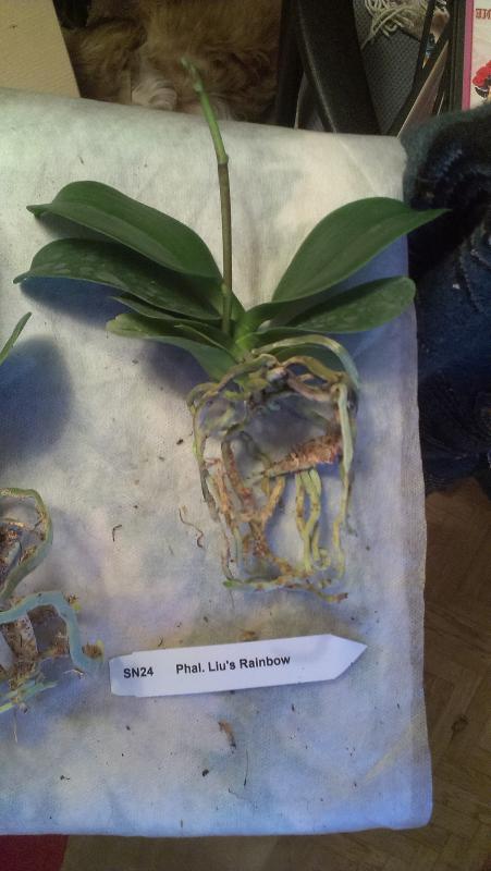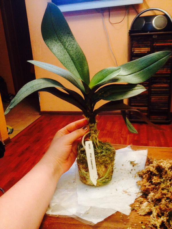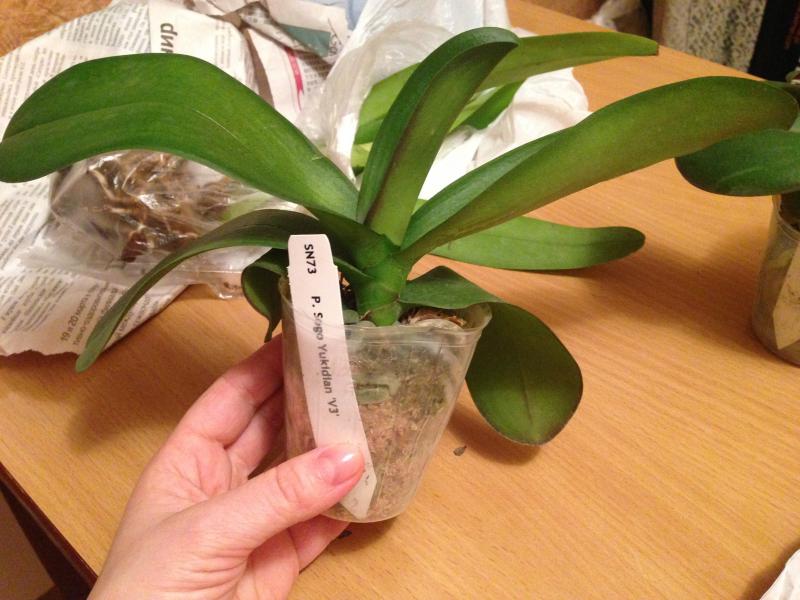 Заказываю также второй раз. В первый раз погиб по моему недосмотру (полила на ночь летом и под кондиционер. За ночь съела бактериалка). Шикарный фаленопсис, нижний лист начал с кончика желтеть - но ничего страшного, другие 4 листа в прекрасном состоянии. Цветения никогда не было. Много корней. Суховаты. Отпоила